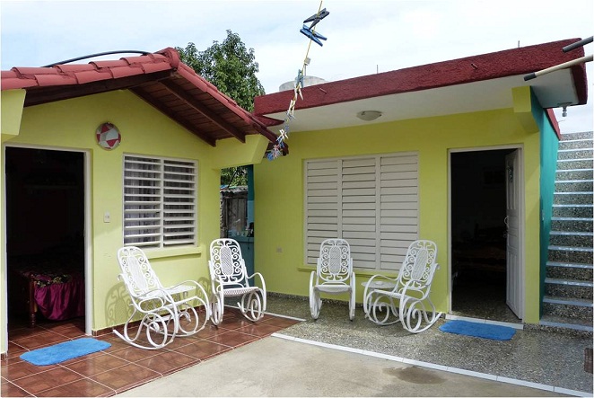 Casa Ana Isa y El Toto is located in Valle de Vi?ales. It is a quiet but central place where you can spend wonderful vacations in a wonderful cuban town. This casa rents two independent rooms with private bathroom each. Bathrooms have hair dryer, and cold and hot water 24 hours a day. Rooms also have, air conditioner, fridge, and wall fan. The first room has 2 double beds and the second one has 2 double beds and 1 single bed. There is a patio perfect to enjoy drinks or the breeze while you hve a conversation with friends or family.